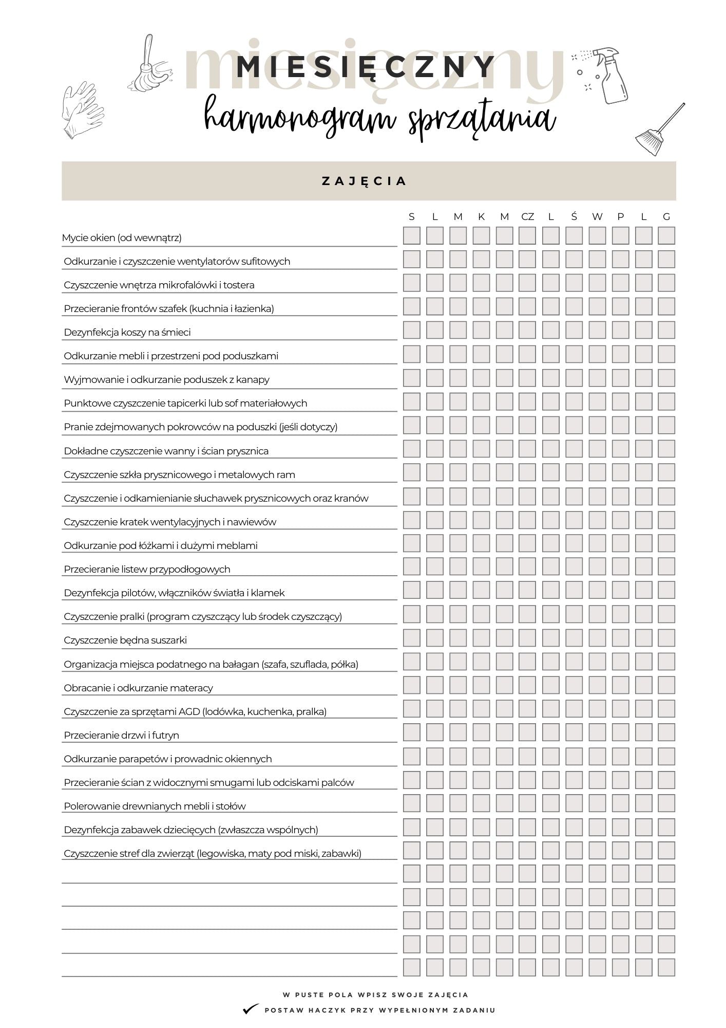 Zestaw planerów, checklist i harmonogramów, które pomagają utrzymać dom w porządku :)